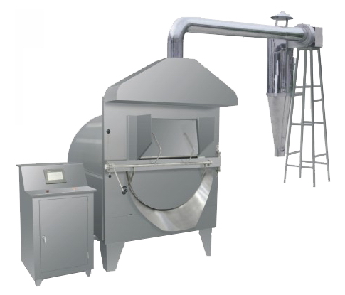 本機(jī)采用PLC+觸摸屏控制,數(shù)控化生產(chǎn),可設(shè)定及存貯溫度、轉(zhuǎn)速、時(shí)間等工藝參數(shù)。采用特殊滾輪支撐裝置支撐炒藥滾筒,滾筒轉(zhuǎn)動(dòng)平穩(wěn),電磁直接加熱滾筒,升溫迅速。滾筒外加保溫層,測溫探頭可直接測量滾筒溫度。本機(jī)具有加熱速度快.熱效率高之優(yōu)點(diǎn),符合GMP要求。